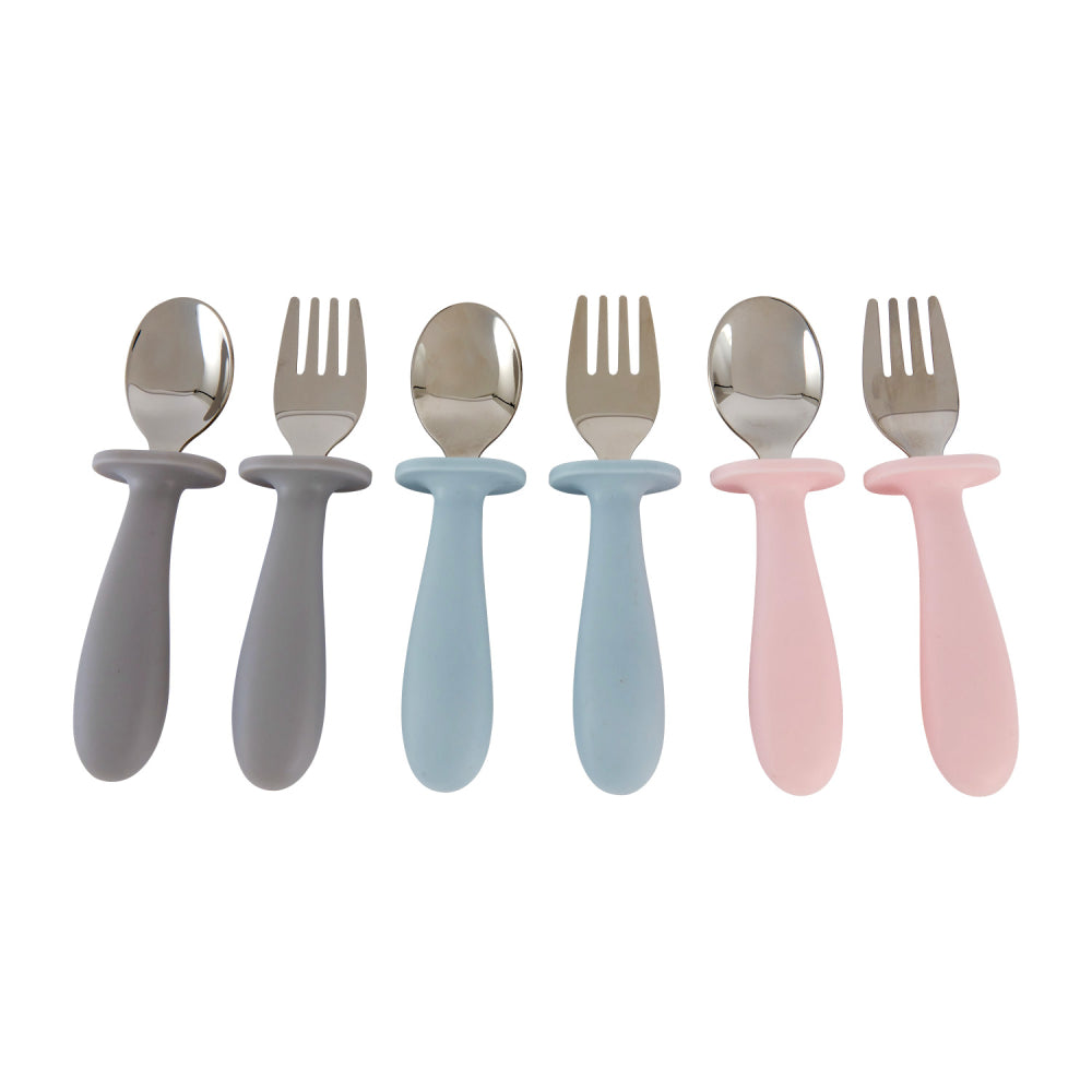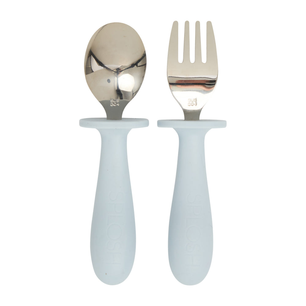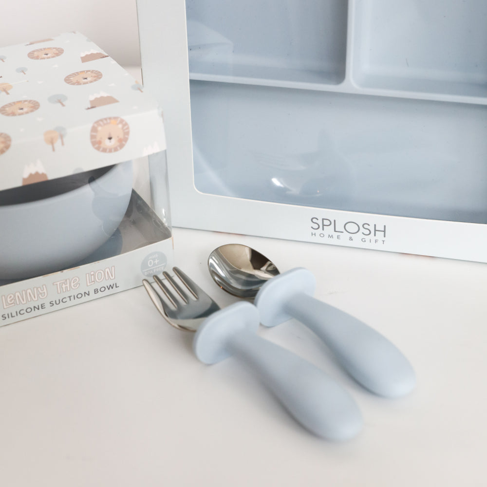 With handles made from food grade silicone, this cutlery set features a fork and spoon to help with littles one learn to self feed.